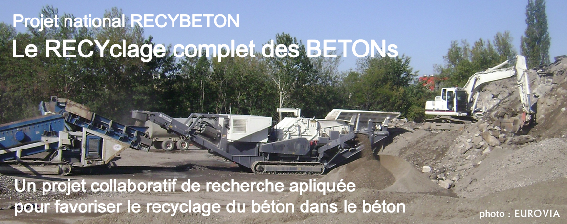 Le programme RECYBETON est un projet de recherche et développement collaboratif se déroulant sur 4 à 5 ans à partir de février 2012. Le budget global est de l’ordre de 4,7 M€ dont une partie est financée dans le cadre du Projet National RECYBETON (PN) soutenu par le Ministère de l’Environnement, de l’Energie et de la Mer et l’autre dans le cadre du projet ECOREB soutenu par l’ANR.